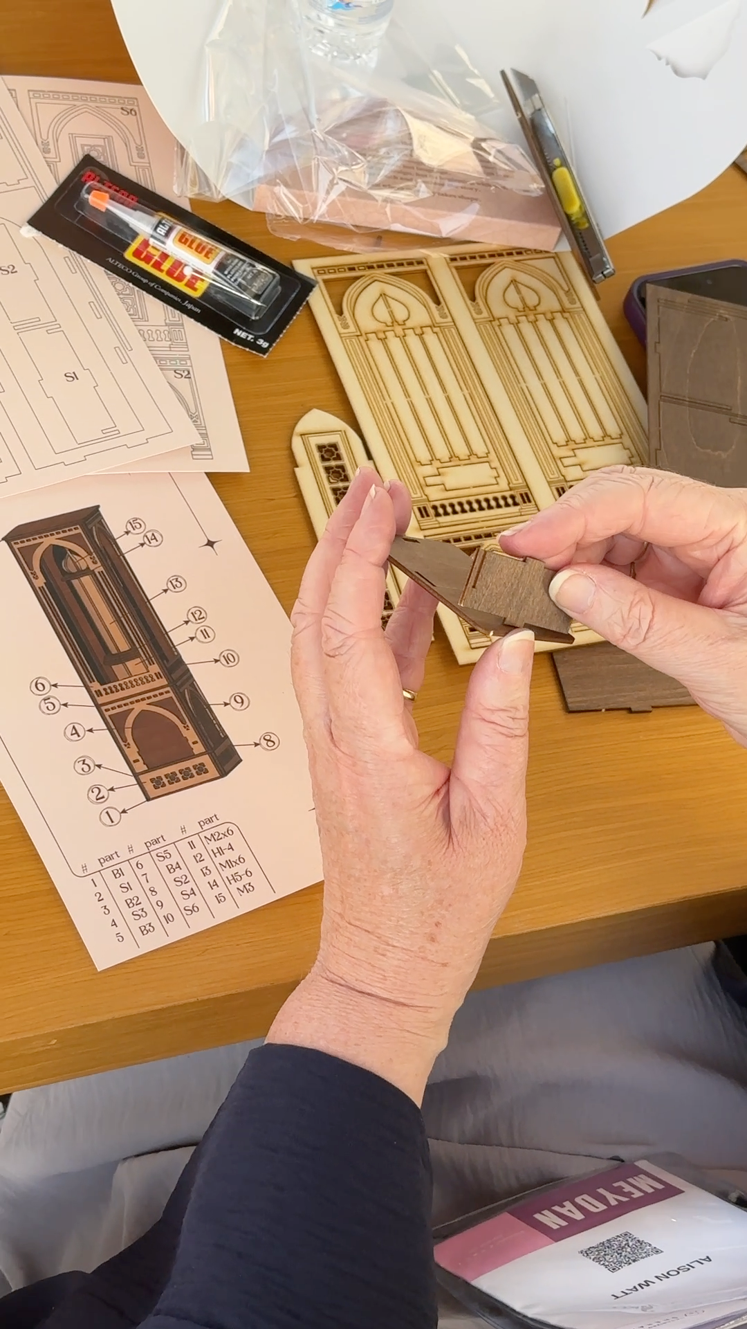 Wooden model kits ready to assemble, with all components and instructions inside.